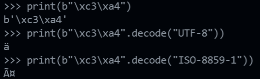 print(b"\xc3\xa4".decode("ISO-8859-1"))
