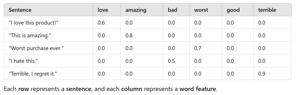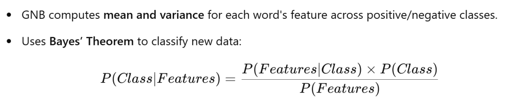 If to use GNB to classify texts, using TF-IDF to embed words is common practice. the TF-IDF matrix looks like below: