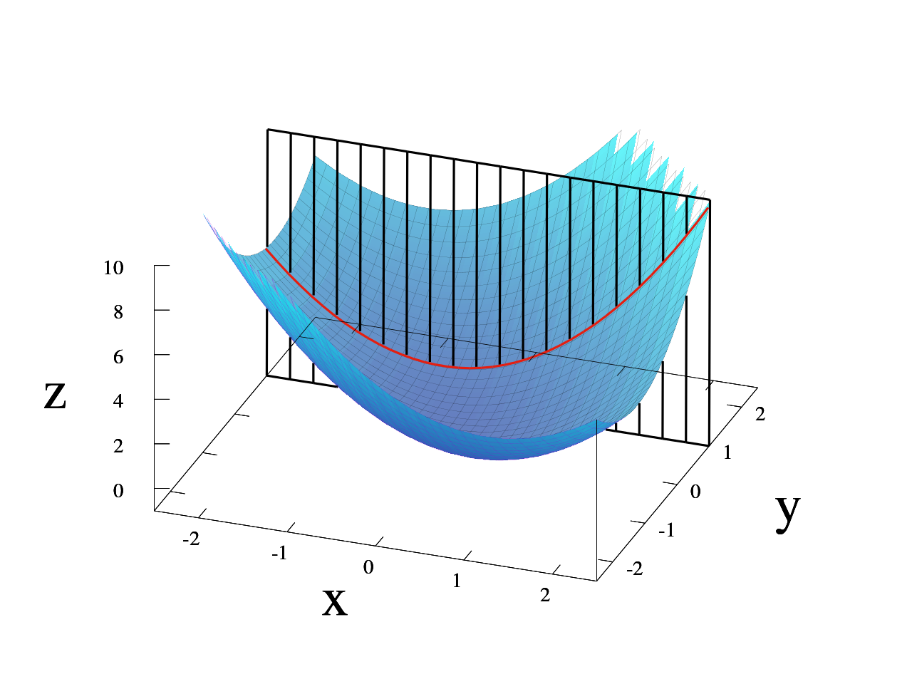 Gradient descent can be thought of climbing down to the bottom of a valley. Picture if we have the valley function as f(x, y) = x^2 + xy + y^2: