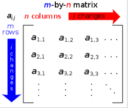 Matrices are a useful notion to encode linear maps, written as a rectangular array of scalars, for example the below m-by-n matrix.
