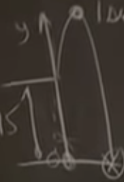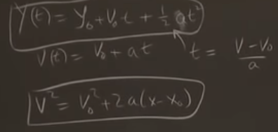 What Physicists differ from pure mathematicians is that they use math as a tool to make sense of the world. So in his lecture, he asked what is the height the object could go, if one stands at a platform 15 meters above the ground, and throw a ball upward with a speed of 10m/s, how tall can the ball go? The tricky part is to figure out that when the ball reaches the top, its speed has to be 0, hence t can be solved, then y can be solved. Or, one can use the bottom equation directly to get the x value.