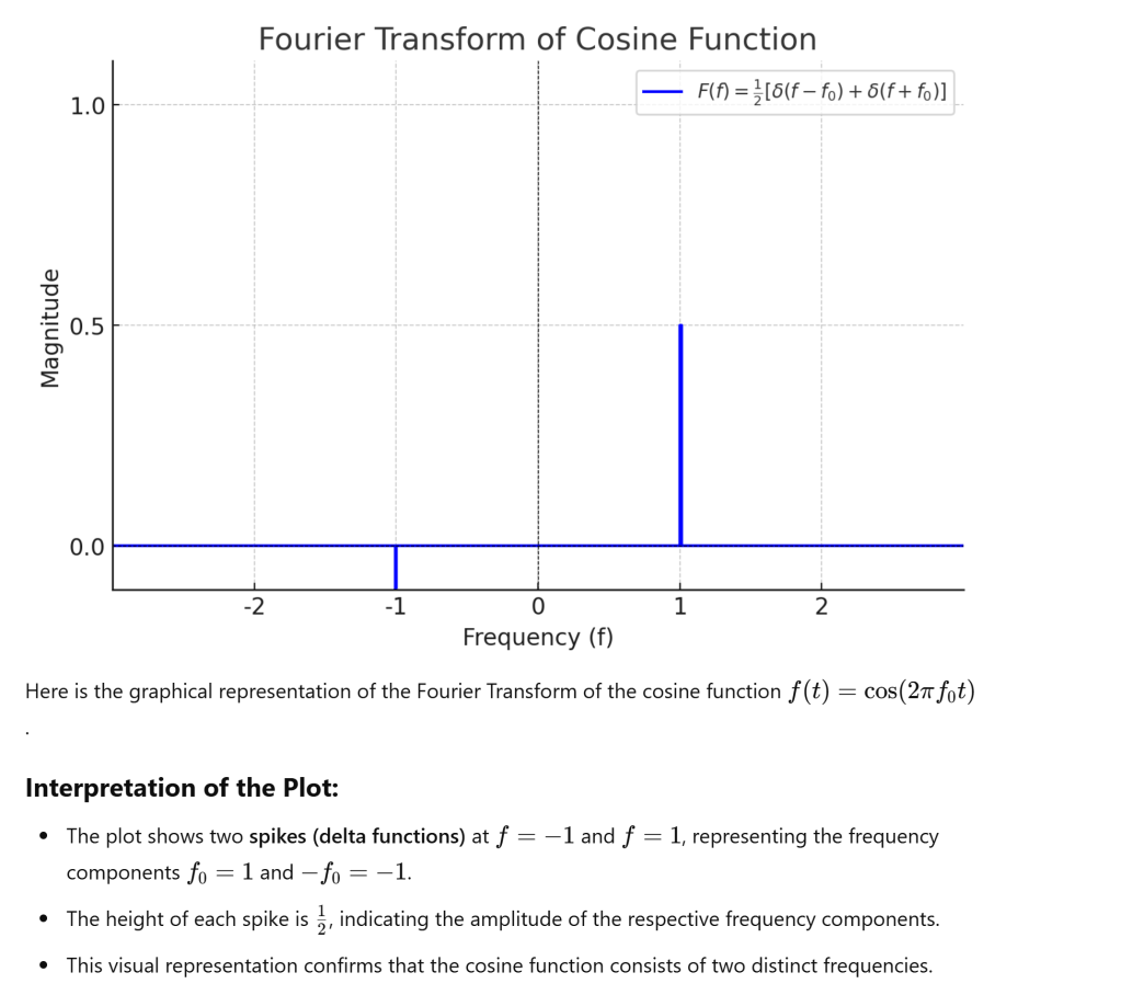 This shows that the cosine function contains two frequency components at f0f_0f0 and −f0-f_0−f0