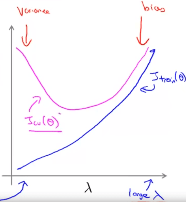It can be visualized of how lambda controlling bias and variance: