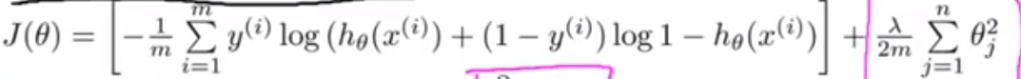 To solve the issue of over-fitting, a math solution is regularization. Note the below cost function with the additional lamda term.