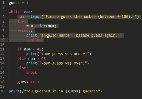 guess = input(f'please guess a number ({self.min} - {self.max}): ')