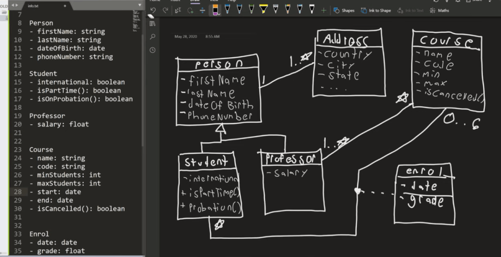 Tim is just getting onto it, so I will follow through. The first clip is on the thinking process. Before jumping into the codes, first take some time to think deep and through, then draw down the design such as the below one for a school educational system.
