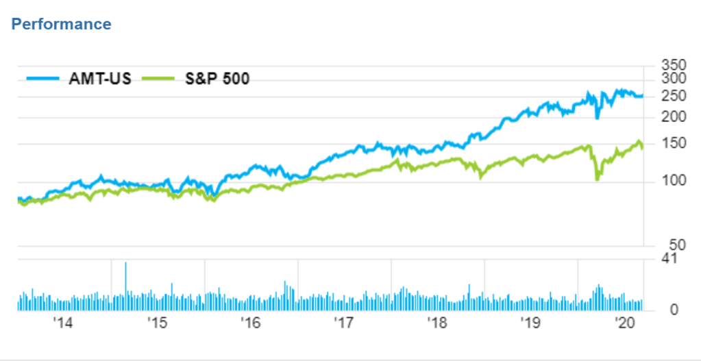 For example AMT-US American Tower Corporation, the performance has been up all the way: