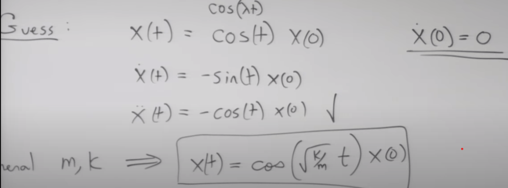 So to solve this harmonic spring oscillation problem, method 1, guess it’s a cosine wave function: