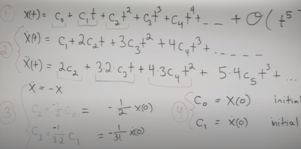 then deduce a more accurate equation: X(t) = cos(t)X(0) + sin(t)X(0)’