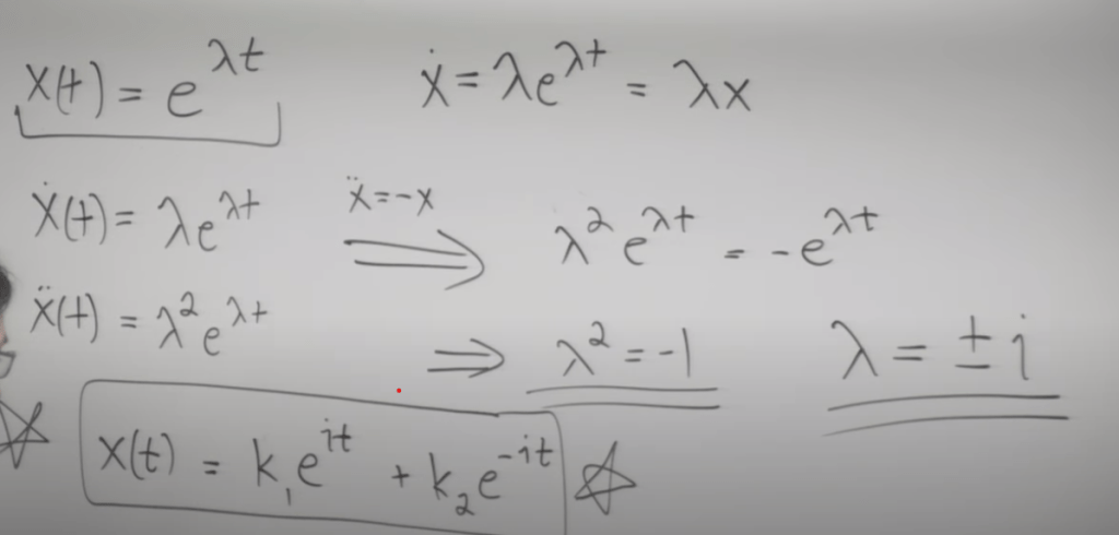 Method 3, take a guess again. What function satisfy X” = X, it looks like that e raised to t time lambda, so plug it in to figure out lambda