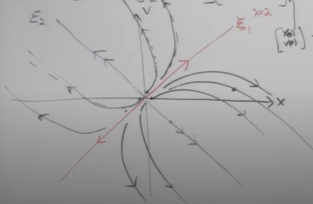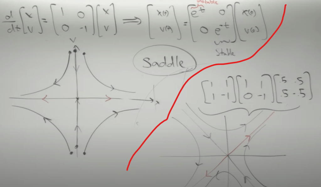 Phasing into the concept of “phase portraits” now. Two vector lines are called invariant manifolds, while any particle staying outside of these lines, will move on the sketched lines…,