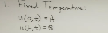 case 2, both ends are insulated, so when time passes by, the temperature wont’ change Ux(0, t) = 0, Ux(L, t)=0.