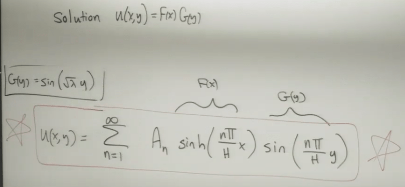 Then plug in Laplace’s equation (uxx + uyy=0) and boundary conditions to find F(x) and G(y).