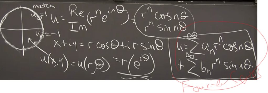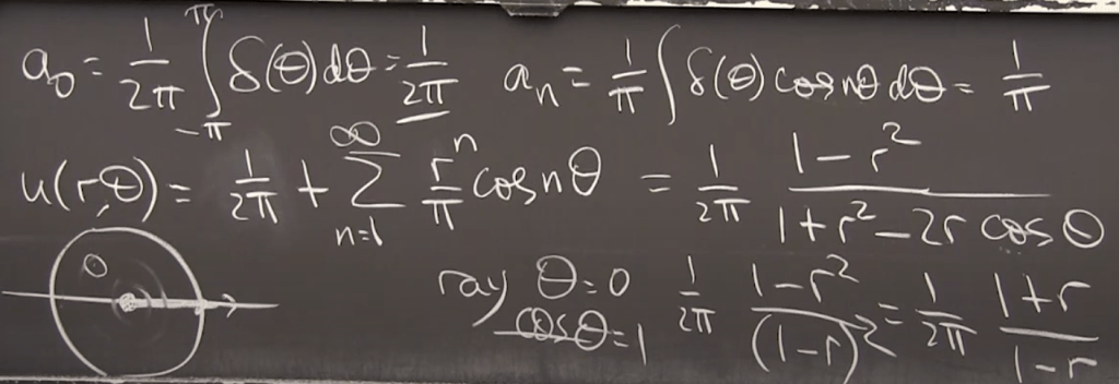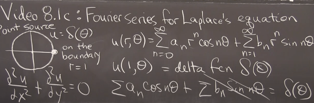 Then we’ll apply Fourier Series to solve the Laplace Equation, assuming there is a point source at r=1, theta=0