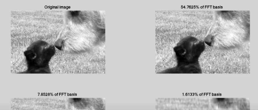 Note normal pictures can keep good quality throwing away 99%, however for those with hairs, furs, grass, FFT is not good at differentiating them, i.e. compression rate is much lower.