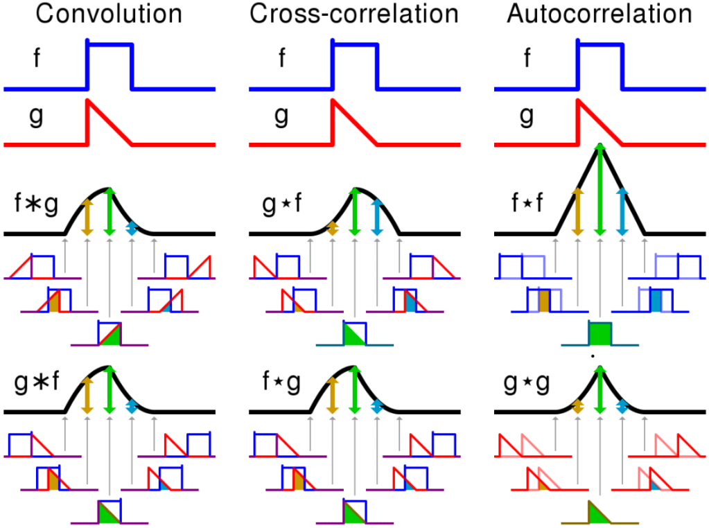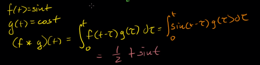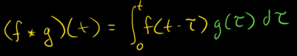 Move on to the final topic – convolution integral. Between two functions/vectors, we can do cross product, dot product, now it’s convolution, what’s the meaning of it, according to wiki: