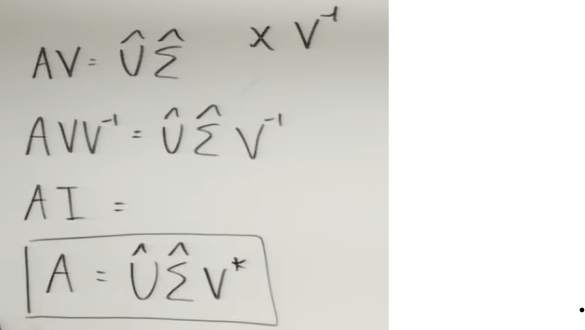 Next, how to compute SVD? Cleverly convert to eigen vector and eigen value computation as follows. Note the concept of unitary vector’s inverse is equivalent to it’s conjugate is applied here.