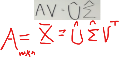 The form AV = Usigma is just a simplistic form of the same matrix idea above. Conceptually understanding v1…vn are orthonormal vectors, it’s easy to know the mxn of A, nxn of V, same, nxn of U hat and there are n sigmas.