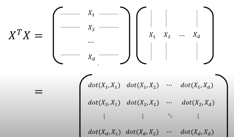 The result is a d by d symmetrical matrix. It is a pivoting and stretching (linear transforming) of original mxd matrix.