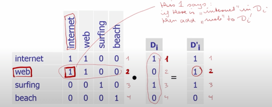 So as long as internet shown up in Di not web, according to the T^k, a value of 1 will still be assigned … In essence, theis A dot At makes it possible to compute variance of two matrix(same) and figure our relationship between words.