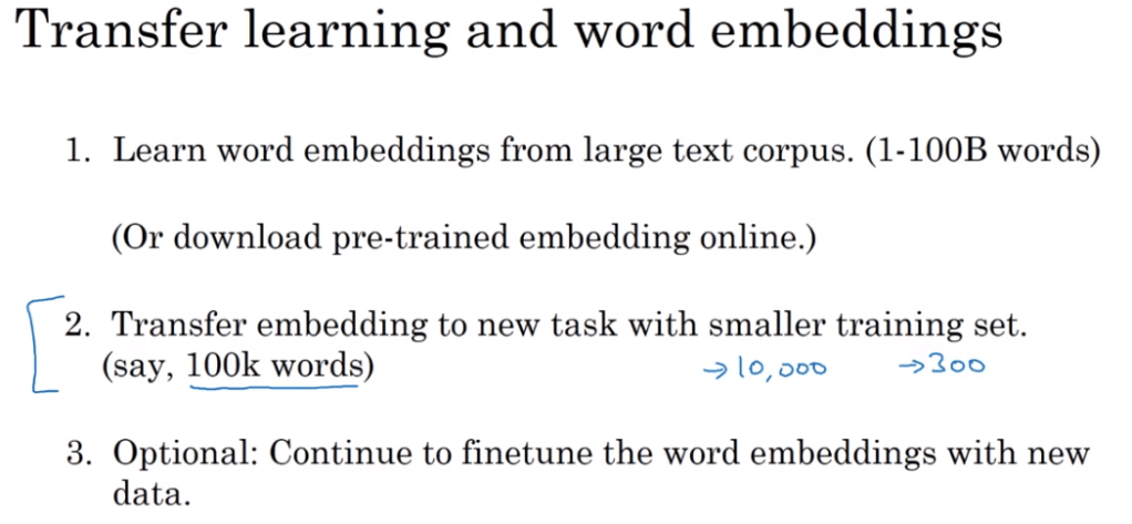 To apply RNN on NLP, the very first thing to figure out is how to represent word. One-hot representation is a naive vectorization method for this purpose. However it can’t catch the simple fact that some words like king and queen, apple and orange are closer in pair rather than out of the pairs. So “featurized representation” is introduced.