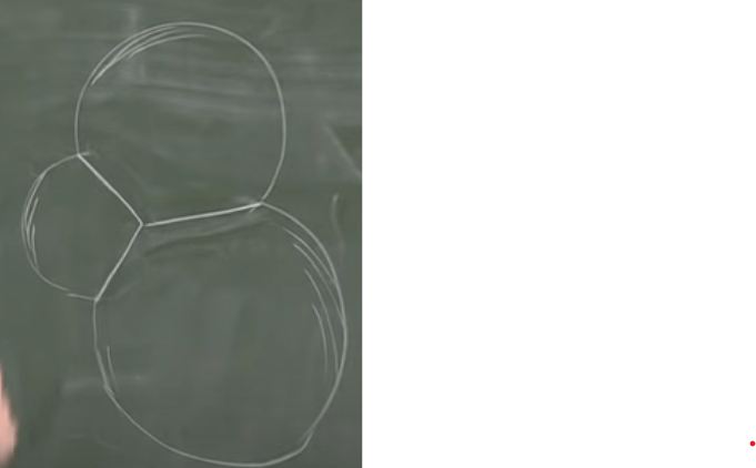 It’s intuitive to see that three balls form a gut in center, these guts flow to one center pt. QED.