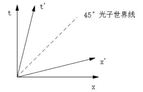 This is the key difference between Minkowski and Euclid Geometry. If we plug in c as a unit, the format is reduced and hence the in spacetime graph, the light line is 45 degree.