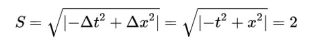 Now let’s apply this to “twin paradox”, reducing it to a simple problem. Before that, we need to grasp the concept of “世界线的线长等于固有时“.
