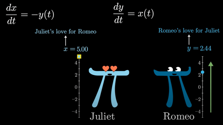 From this 3B1B video two real life problems are demoed: one is Romeo and Juliet love equation and the other is the Schrodinger wave equation.