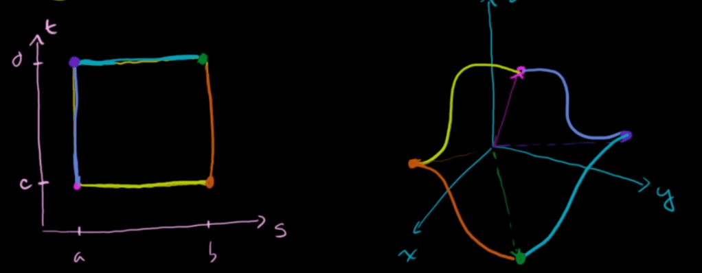 Next Stoke’s Theorem, it’s essentially just more generic form of Green’s theorem – The line integral of a vector field over a loop is equal to the flux of its curl through the enclosed surface.