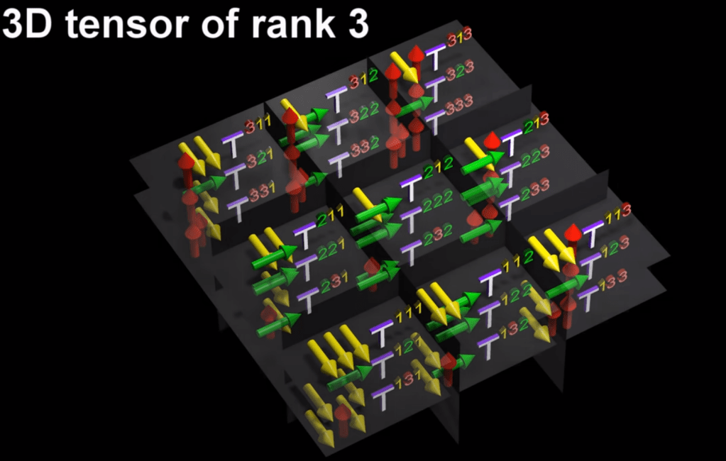 Recall dot product of two vectors turning into a real number below, the gij is a tensor, it’s exactly as shown in above animation.