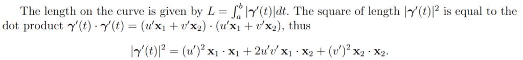 - Basis vector is defined as the derivatives of position vector R to the directional/axis vector (u or v, x, or y or z). If it’s normalized to unit e vector then it’s length = 1. Why?