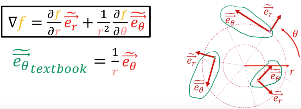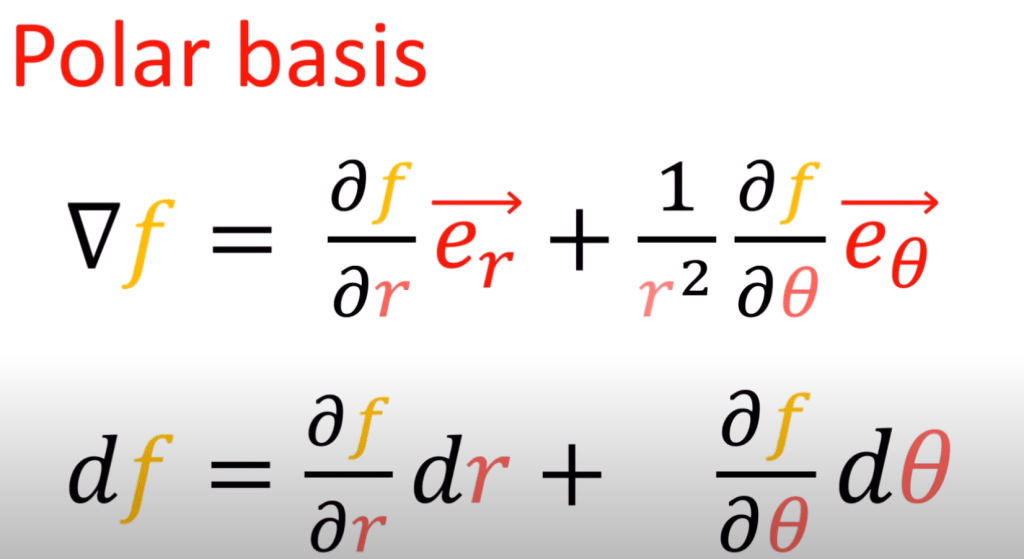 But in other systems such as polar coordinates, the covector form df is correct while pure del f(gradient) needs to be modified with 1/r2.