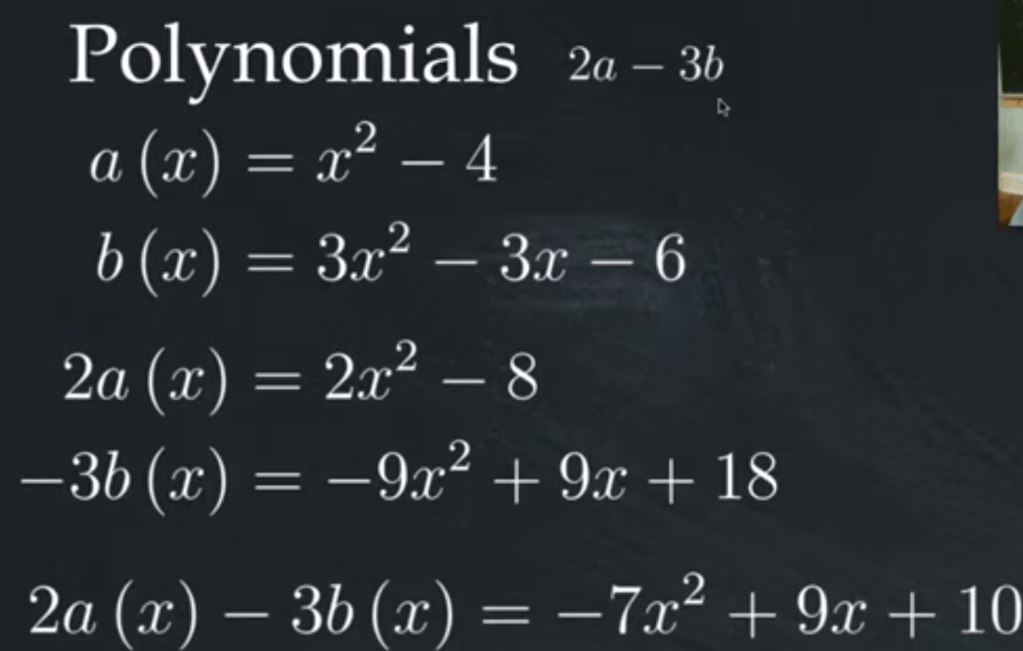 All vectors can do linear combination alpha*a + beta*b, it’s straightforward in geometric vectors, how about polynomials. Note f(2) = 0, so after whichever ways of linear combining, the f(2)=0 still holds.