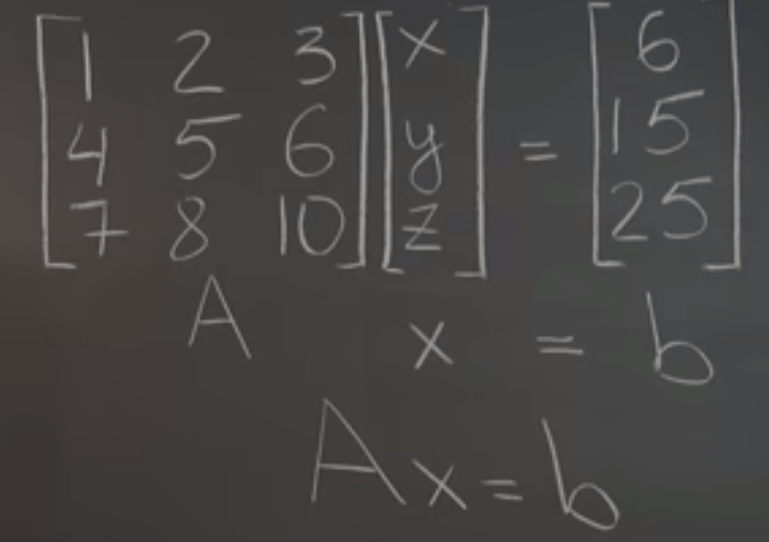 Borrowed from algebra it becomes a genius work to weld matrix and algebra together. For the below linear system expression originally for polynomials, writing it to the form of Ax = b will be an incredible convenient algebraical way to solve math problems!