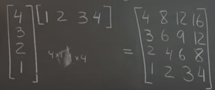 With a little bit more play around we came to realization that the matrix multiplication is basically actions exerted onto the matrix right side to the left side. For example, the single matrix/vector 1, 1, 1 here just pick each column in the left matrix and add up.