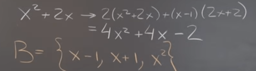 It’s clear that the component is equivalent to the eigen vector no matter what basis system you choose. Given this knowledge, know we can tackle the Dilation transformation such as below. Because we can easily figure out the component and hence the eigen value and eigen vectors, and finally converting back to the polynomial forms.