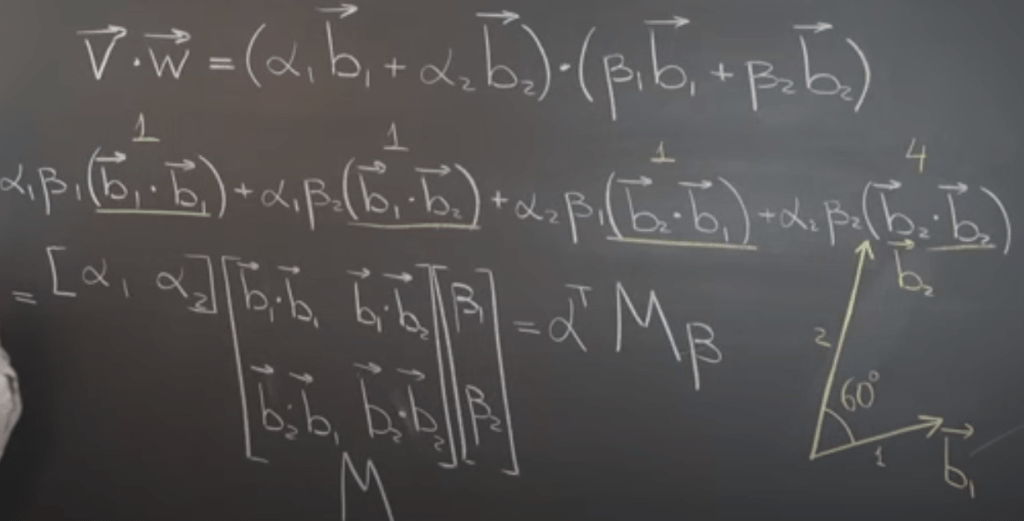 If the basis system is not cartesian, say a vector and b vector with some non-90 degree angle in between: