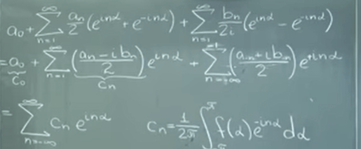 It sets the prelude to Fourier Series. In LA, it is revealed that FS is nothing abut a least square (approximating) problem. if n can go infinite, then it’s not a typical least square approximation r = Ax – b (matrix format), it’s precise.