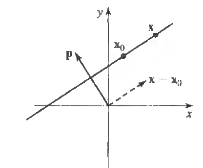 So, if given a vector p and a fixed point, we can deduce the plane passing through the point while perpendicular to p: