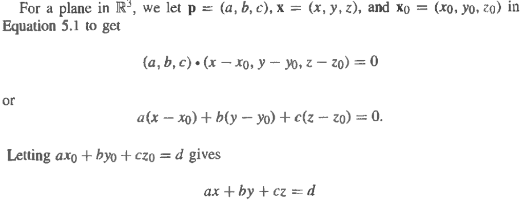 How to even approach this question. let’s start from the basic description of equation of lines or planes by knowing the perpendicular vector p. like shown below: knowing a fixed point x0, perpendicular vector p, try to find/describe the set of points x,