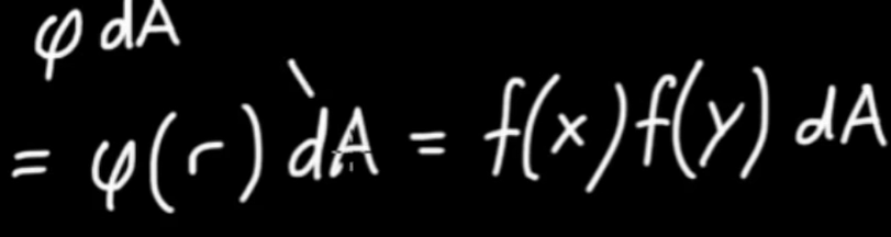 Throwing a dart to the hit the target, we use this model to compute the PDF – probability density function sai. Knowing that what is proportional to sai value is not x, or y, but the distance to the origin r.