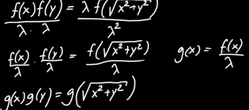 How to solve this g, by observing it look similar but not exact to h(x)h(y) = h(x+y) which can quickly relates to the power of e or any constant. Then the work is just to manipulate x2+y2 to make it exact. So we need to square and then take exponent. let’s assume