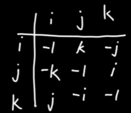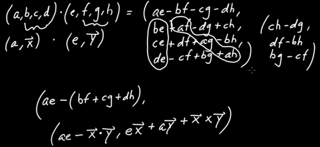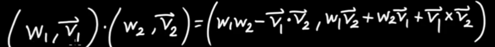 It was invented by an Irish mathematician Hamilton in the 18th century, follows exact same logic as we learn matrix, but instead of in 2 or 3 dimension, it sets 4D. Any quaternion can be expressed as q = (a, b, c, d) or = (scalar a, vector formed by (bi, cj, dk)).