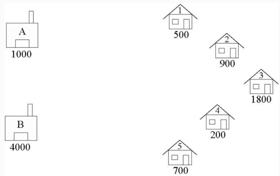 assume then that there is a fixed transportation cost per crate. (If the capacity of a truck is small compared with the number of crates that must be delivered then this is a valid assumption). Lets assume we talk with the financial manager, and she gives us the following transportation costs (dollars per crate):