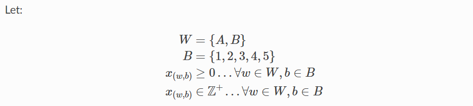 vars = LpVariable.dicts("Route",(Warehouses,Bars),0,None,LpInteger)