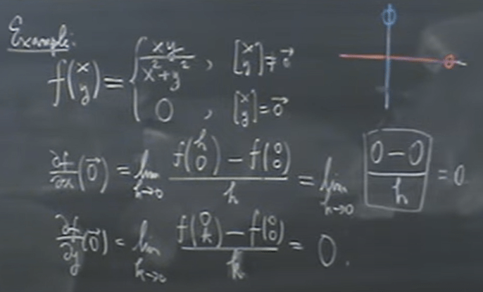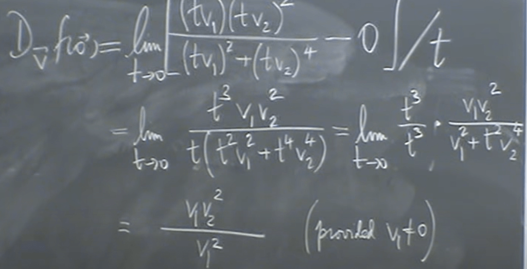 Now let’s take a look at this example, which already know that it’s not continuous at origin, the question to ask now is does it have directional derivative at origin?
