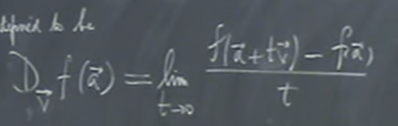 Generalizing form only x, or y axis moving, we name a random vector v to move along, we use a succinct symbol below to denote the derivative in the direction of v of function f at point a: