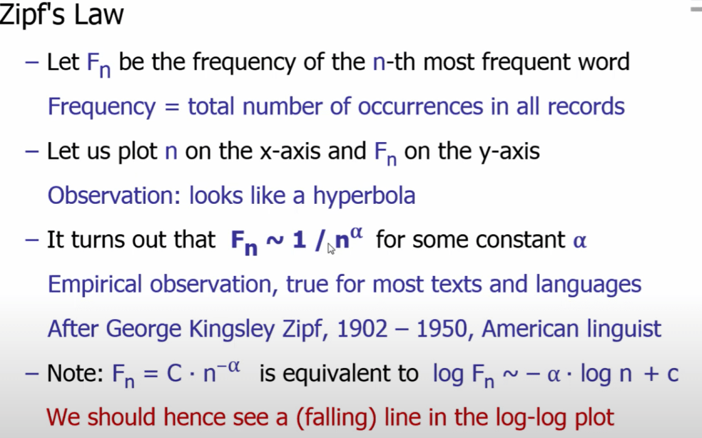 In the very first lecture, she taught inverted index and the concept of Zipf’s law.