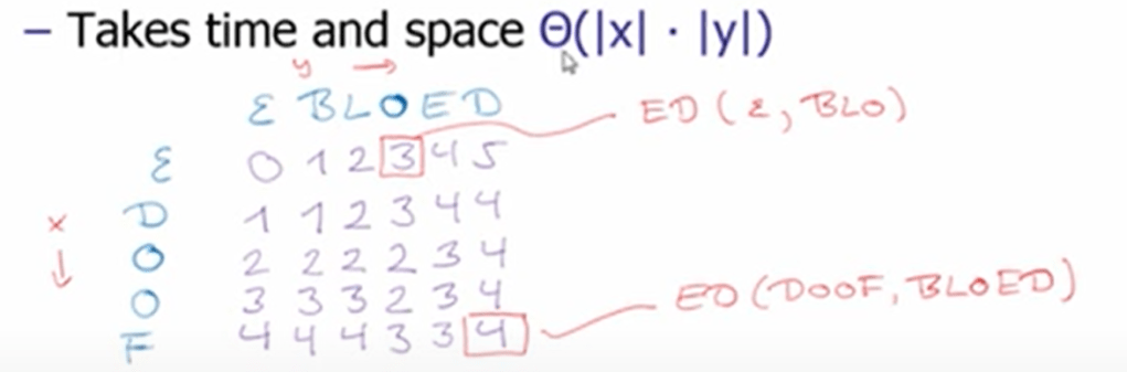 It comes naturally to apply dynamic programming algorithm to compute ED(x,y):